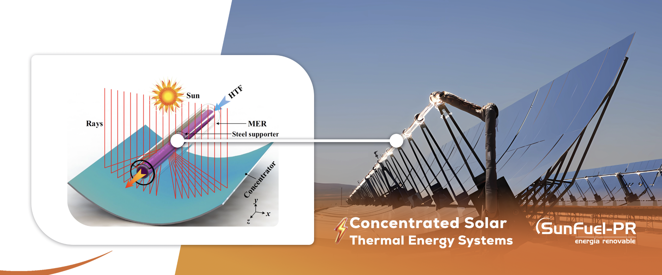 Energy derived from using concentrated solar thermal power using mirrors or lenses to focus sunlight onto a smaller area to significantly boost the efficiency of solar panels which create heat to produce energy. This concept is the same as when a magnifying glass is placed under sunlight to light a fire but on a much larger scale.
