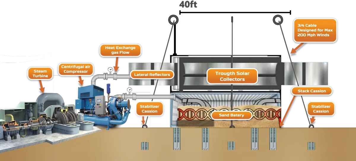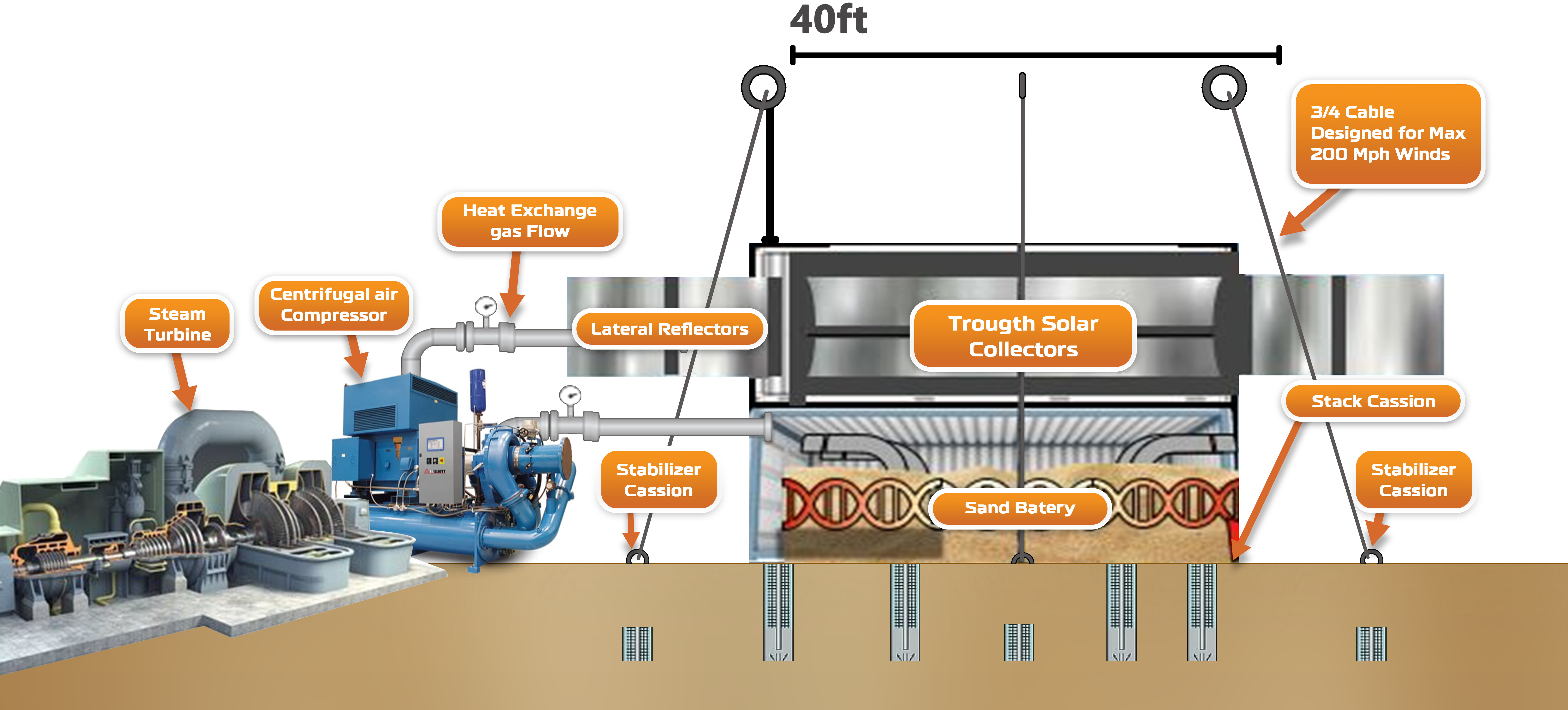SunFuel has perfected the thermal concentrated solar power technology. Using a proprietary gas mixture that absorbs and transfers more heat than any other medium or fluid yet discovered, SunFuel thermal power generators produce more usable power with a smaller footprint (1/20th the size) of conventional PV systems and exceed their performance by an 80% efficiency factor!