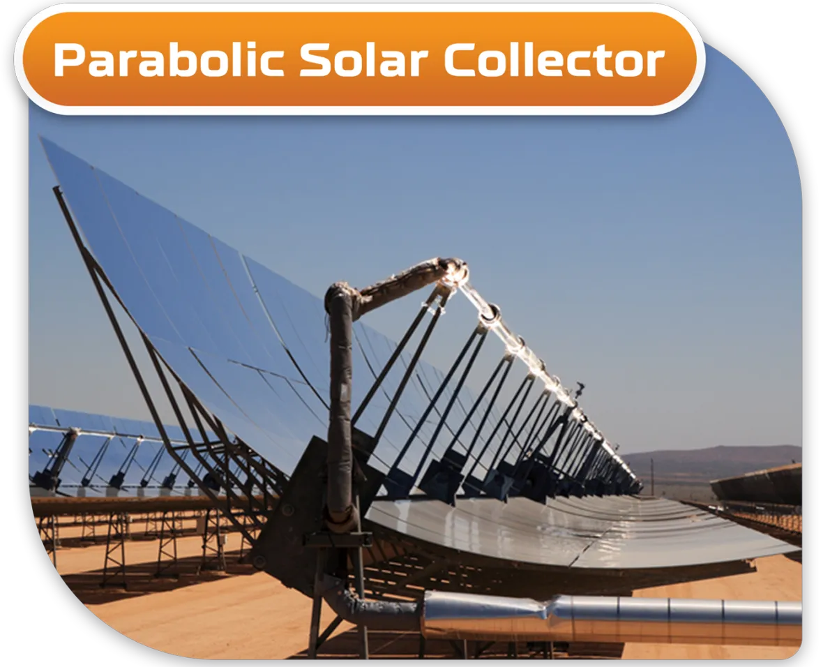 SunFuel Parabolic solar collectors (also referred to as trough reflectors) capture direct sunlight radiation over a large surface area and focus onto a small focal point receiver where the sunlight is converted to heat, which increases the overall efficiency of the collector panels by over 400% over the traditional PV panels (conventional PV panels have an average of only 20% efficiency while SunFuel collectors have over 80% efficiency). This significantly increases the production of overall heat from direct sunlight.